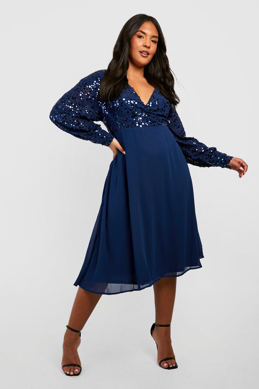 Plus floral sequin wrap sales skater dress