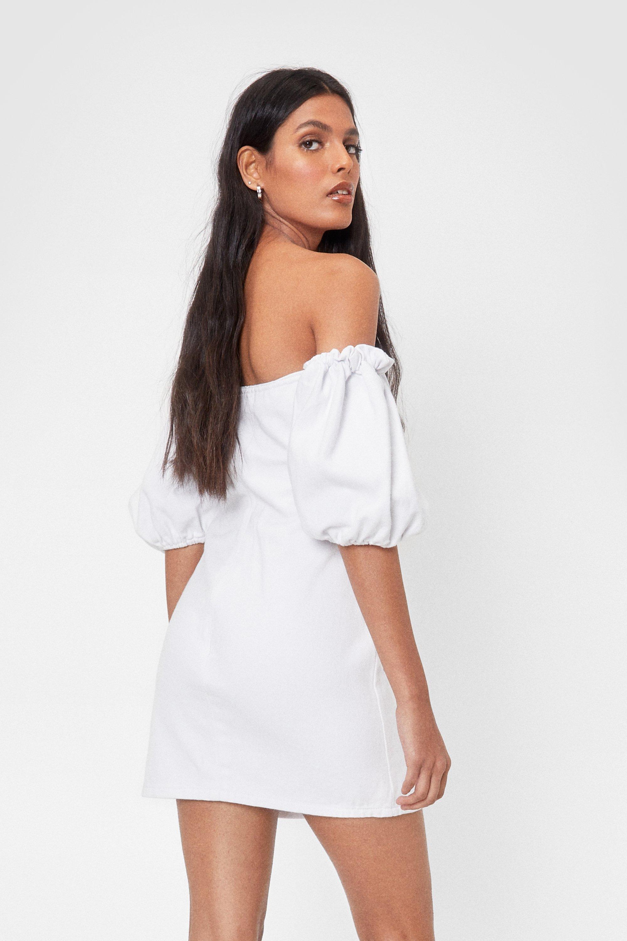 White denim off the sales shoulder dress